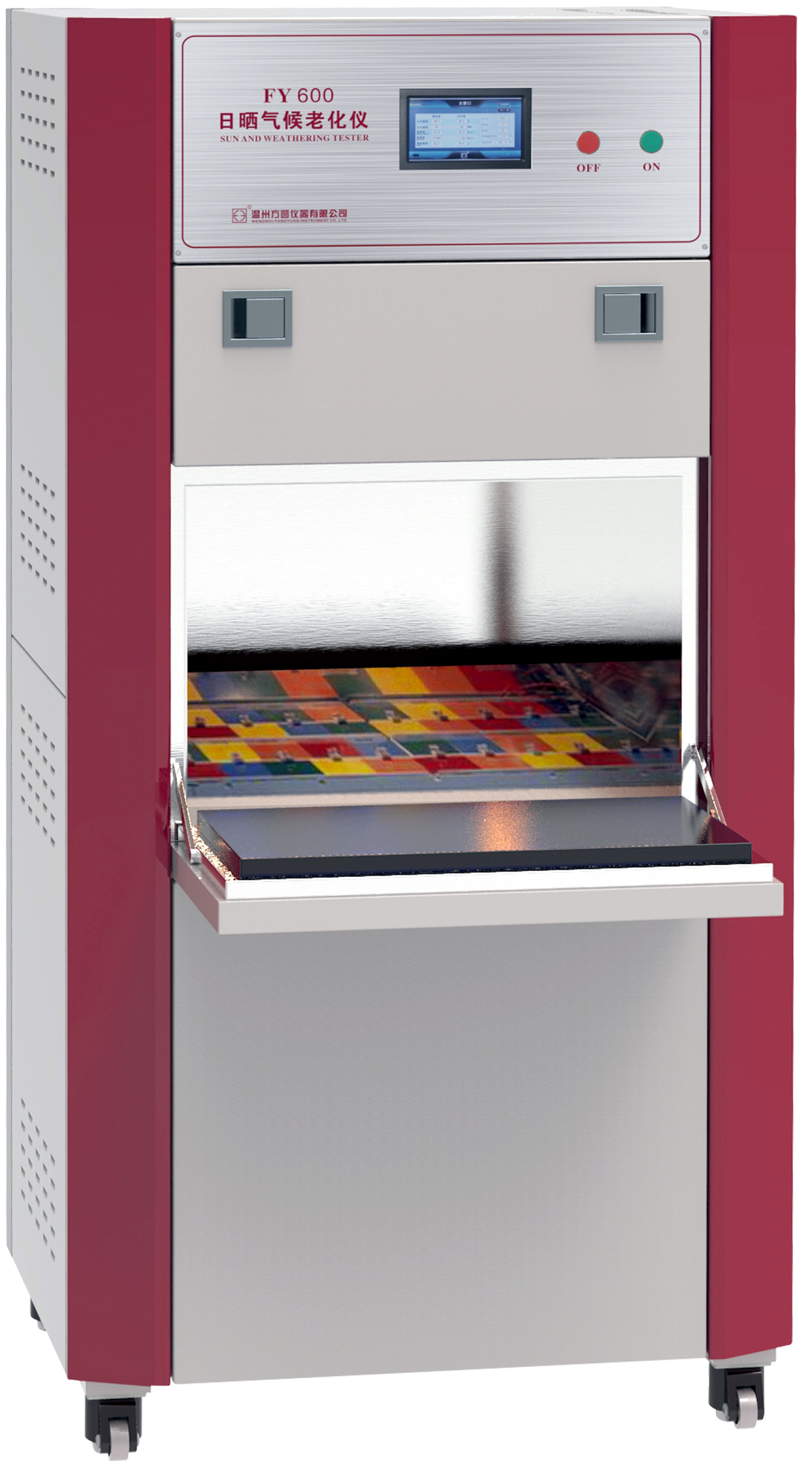FY600日曬氣候老化儀 AATCC16,169、ISO105-B02、ISO105-B04、ISO105-B06、ISO4892-2-A、ISO4892-2-B、GB/T8427、GB/T8430、GB/T14576、GB/T16422.2、1865、1189、GB/T15102、GB/T15104、JIS 0843、GMW 3414、SAEJ1960、1885,JASOM346,