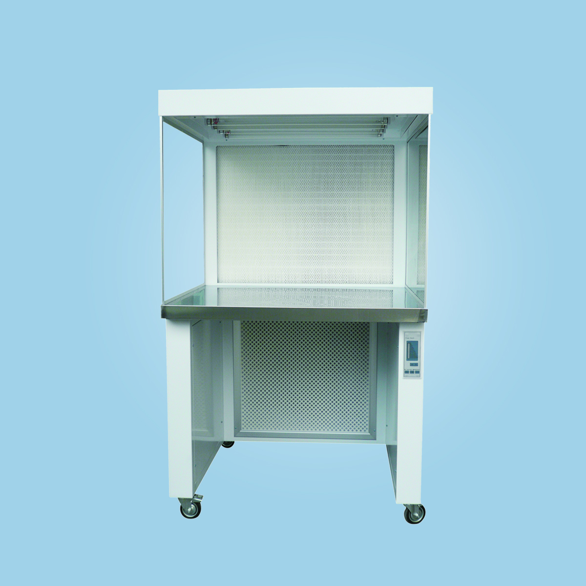 通過(guò)風(fēng)機(jī)將空氣吸入,經(jīng)過(guò)初效過(guò)濾器,再由靜壓箱進(jìn)入高效過(guò)濾器過(guò)濾,形成潔凈氣流以垂直或水平狀態(tài)均勻送出,達(dá)到百級(jí)高潔凈度的工作環(huán)境。
